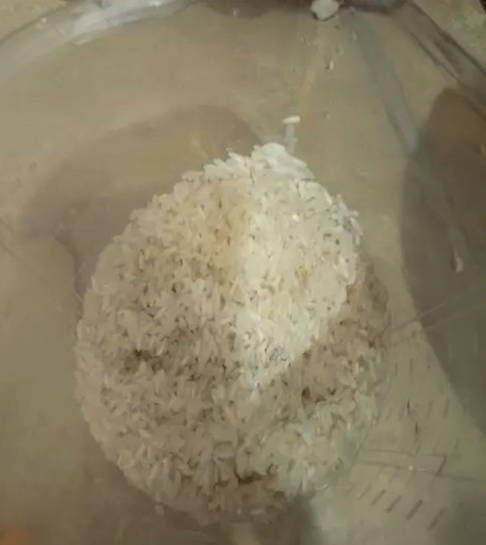 - Doe de rijst in een bak en spoel in verschillende wateren totdat de korrels een "halfglas" uiterlijk krijgen.