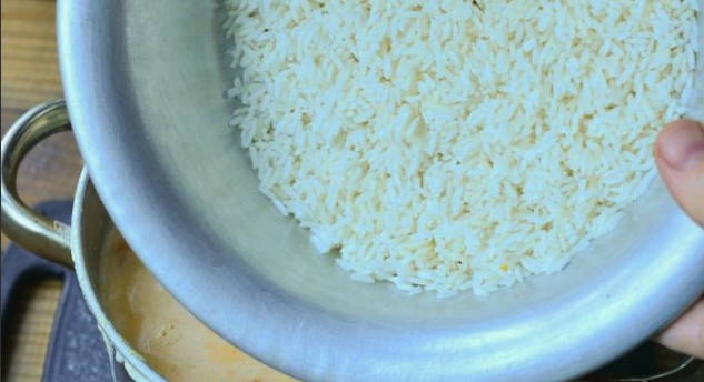 - Giet melk (één glas) in een pan, doe er gewassen rijst in. Breng de melk en rijst aan de kook, zout naar smaak, voeg suiker toe en kook de granen tot ze gaar zijn.