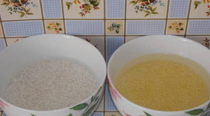 - We wassen rijst en gierst goed in stromend water. Week de granen twintig minuten voor het koken.
