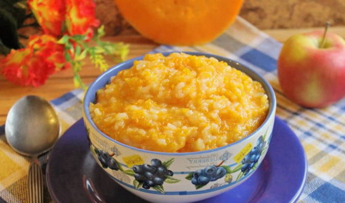 De combinatie van rijst en pompoen is niet alleen lekker, maar ook gezond door de succesvolle combinatie van vitamines en mineralen. Bovendien geven koolhydraatrijke granen met plantaardige vezels een langdurig gevoel van verzadiging - dergelijke granen zijn perfect voor het ontbijt of een licht diner.