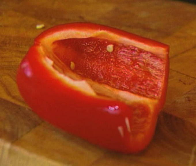 - Snijd de tomaten en paprika's, voeg toe aan de wortel en ui en bak ze mee.