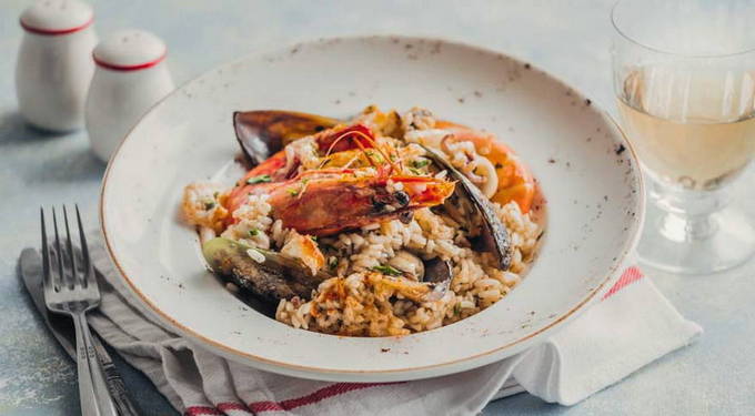 Italiaanse risotto met garnalen en mosselen
