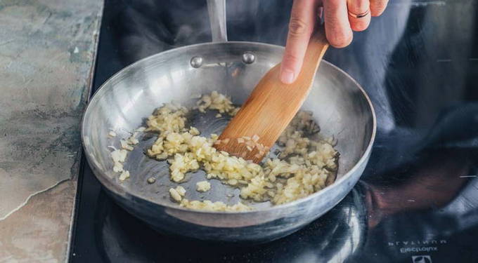 - Voeg dan de knoflook toe.