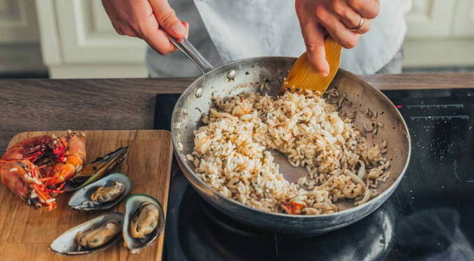 Eenvoudig en heerlijk recept voor garnalen- en inktvisrisotto