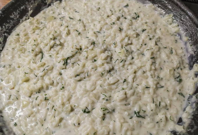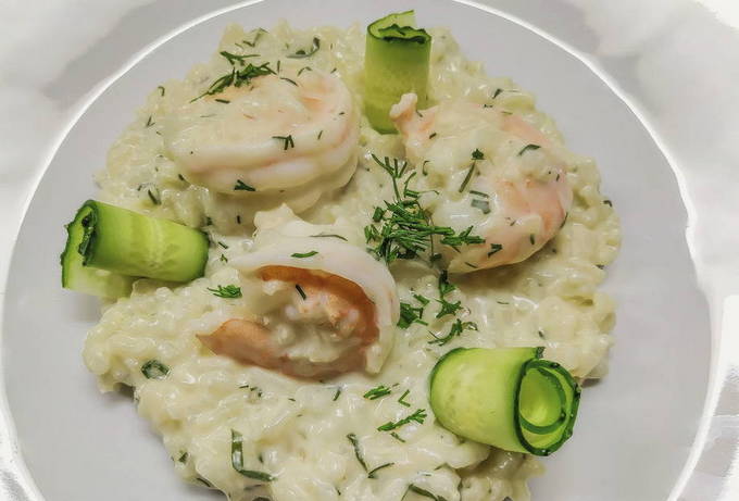 Huisgemaakte garnalen- en wijnrisotto