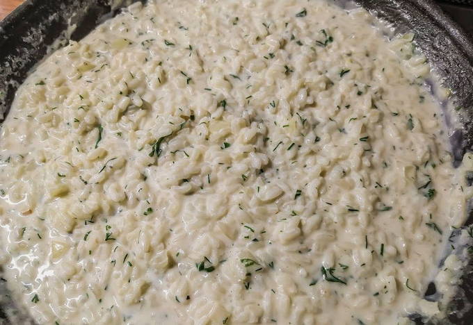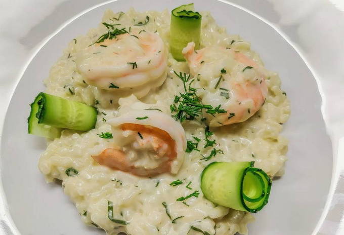 Risotto is een klassieker uit de Italiaanse keuken, de hoofdingrediënten zijn speciale rijst, zeevruchten of gevogelte en bouillon. Het gerecht heeft een romige delicate smaak en alle ingrediënten worden in de mond gesmolten door een vrij lang sudderen, eerst in droge witte wijn, en daarna in een rijke bouillon.