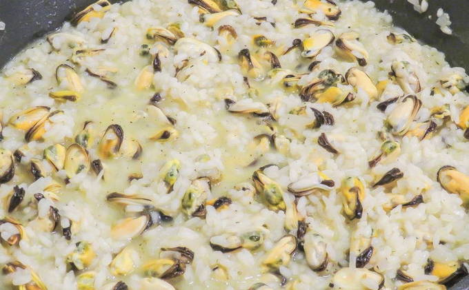 Stapsgewijs recept voor het maken van risotto met mosselen