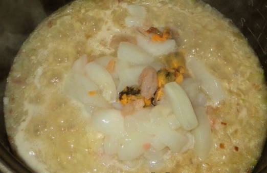 - Giet de inktvisbouillon bij de rijst en laat sudderen tot ze gaar zijn, vergeet niet te zout naar smaak.