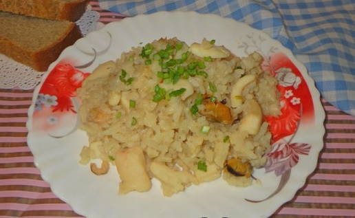 Een uitstekende optie voor een warm gerecht voor een feestelijke tafel of gewoon familiebijeenkomsten. Arborio-rijst past goed bij zeevruchten zoals garnalen, mosselen, inktvis en octopus, maar je kunt alle schelpdieren gebruiken die je hebt. Het gerecht gaat goed samen met droge witte wijn en halfzoete mousserende wijn.