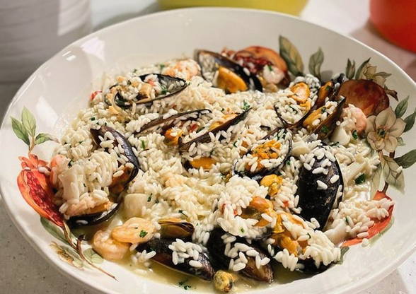 De klassieke versie van de bereiding van Italiaanse risotto met toevoeging van zeevruchten zoals mosselen. De smaak is delicaat, met hints van Provençaalse kruiden en een afdronk van hard gerijpte Parmezaanse kaas.