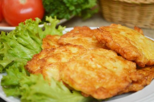 - Verdeel de schnitzels vervolgens met een lepel op de verwarmde plantaardige olie, zoals pannenkoeken.