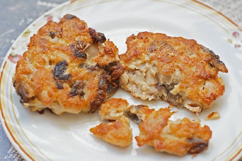 - Als de kipfiletkoteletten met champignons vettig zijn, leg ze dan op keukenpapier en serveer tot ze zijn afgekoeld.