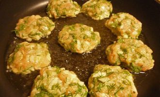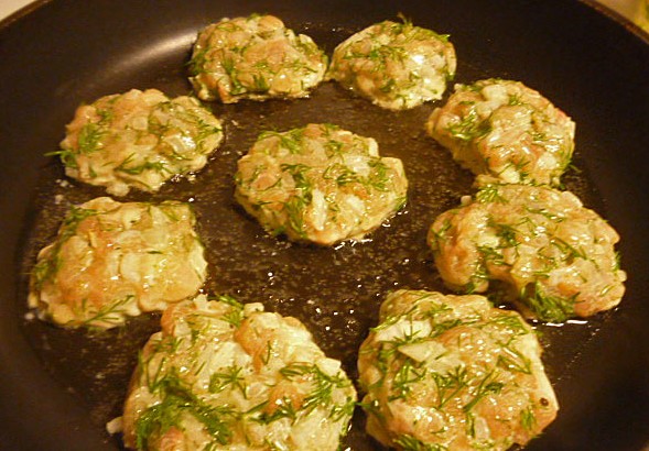 - Als je tijd hebt, laat het gehakt dan een paar uur in de koelkast staan en leg de schnitzels dan in een hete koekenpan in hete olie met een lepel, alsof je deeg voor pannenkoeken typt.