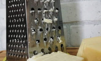 - De smeltkaas wordt ingewreven, fijngehakte knoflook wordt toegevoegd, vermengd met de courgette-ui-massa en het mengsel wordt op smaak gebracht met mayonaise.