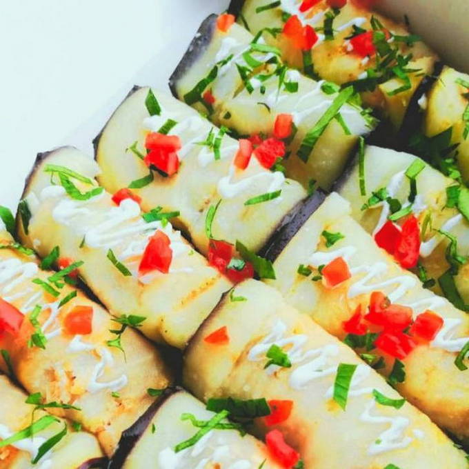 - Auberginerolletjes met mayonaise, kaas en knoflook