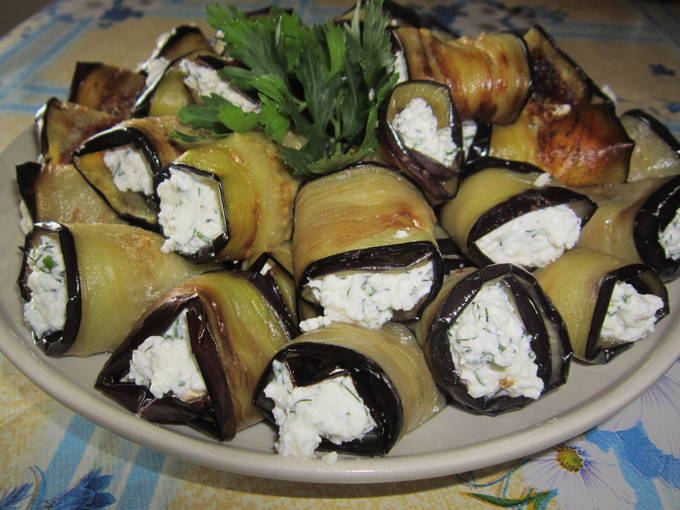 Een eenvoudig recept voor het maken van auberginerolletjes met kwark?