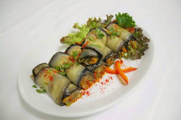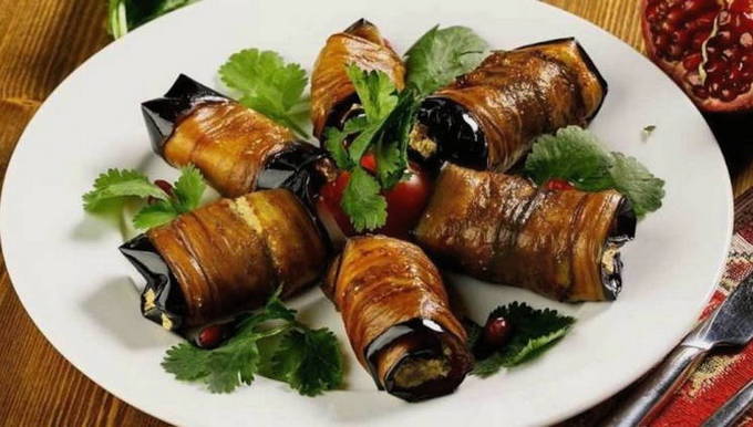Auberginerolletjes zijn een origineel en heerlijk aperitief dat evenzeer geschikt is voor een feestelijke tafel als een makkelijk dinergerecht. De vulling is meestal een combinatie van verschillende soorten kaas met knoflook en groenten. Rollen worden geserveerd bestrooid met granaatappelpitjes om het gerecht een speciale charme te geven.