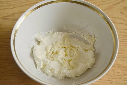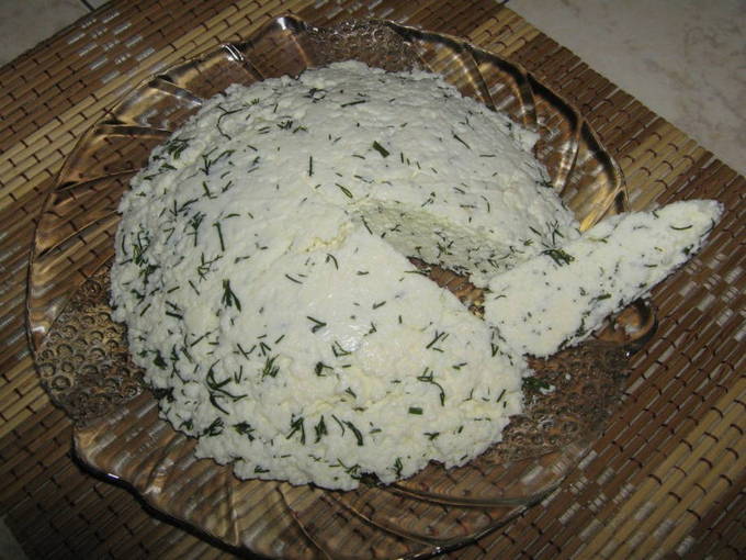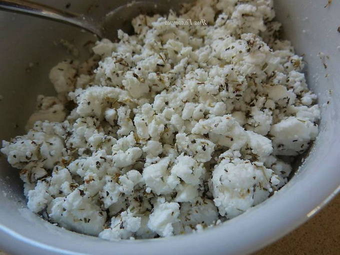 - Meng de zachte kaas met gehakte knoflook en koriander, voeg fijngehakte hete pepers toe, breng op smaak met zout, paprikapoeder en voeg de gewenste hoeveelheid van het kruidenmengsel toe.