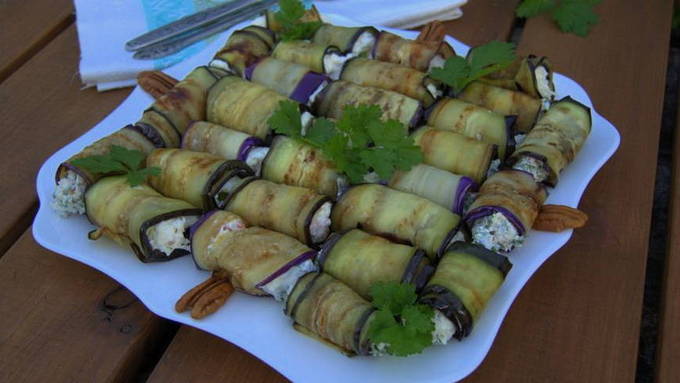 In Georgië zijn auberginerolletjes een populair gerecht gevuld met walnoten en verse koriander.Het gerecht wordt meteen pikanter en krijgt een originele smaak.