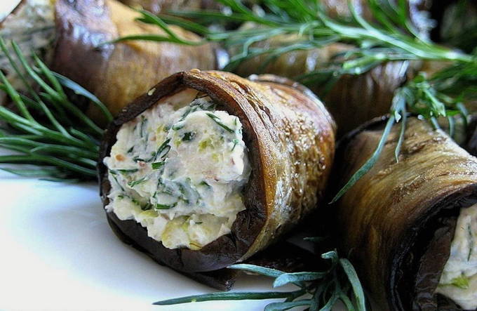 - Auberginerolletjes met kruiden, roomkaas en knoflook