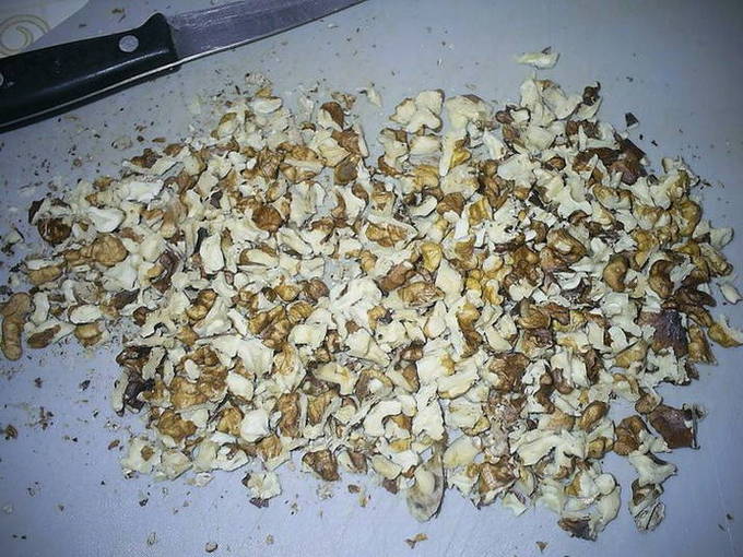 - Hak de walnoten zo klein mogelijk.
