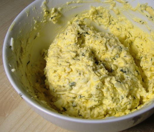 - Meng kaas met gehakte kruiden en knoflook, voeg eventueel mayonaise en zout toe.