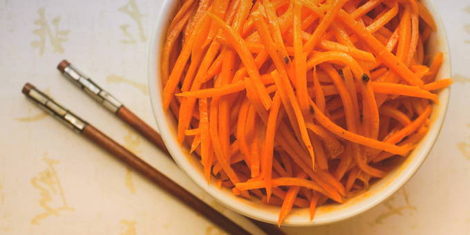 - Schil en rasp de wortelen om middelgrote schaafsel te maken. Je kunt het raspen zoals bij Koreaans koken.