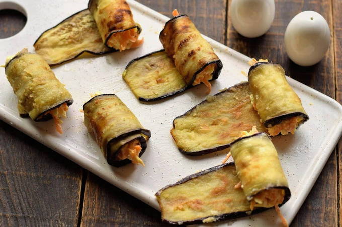 - Auberginerolletjes met kaas, knoflook en wortel