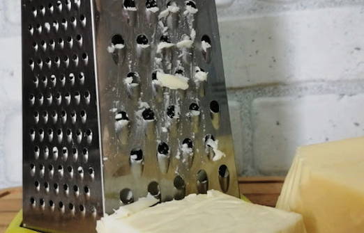 - Courgette wordt geschild en geraspt op een grove rasp.