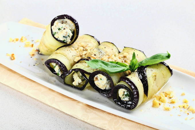 Een eenvoudig recept voor het maken van auberginerolletjes met kwark?