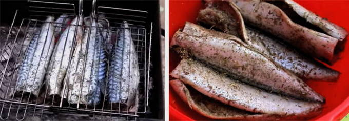 Makreel, gebakken op houtskool met kruiden en knoflook, is door zijn eigen vetgehalte sappig en verrassend mals. De kosten van dit soort vis zijn laag, maar wanneer bereid volgens dit recept, is het de moeite waard om als hoofdgerecht te dienen voor een buitenfeest of een familiefeest in de natuur.