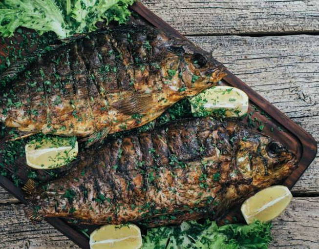 - Delicate en smakelijke riviervis gebakken op een rooster
