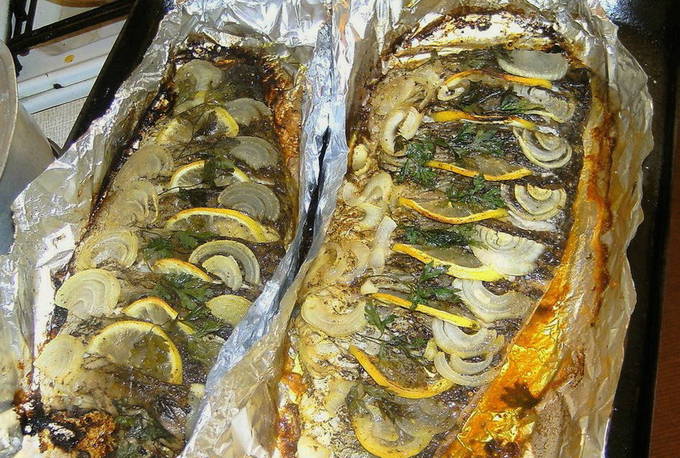 Stap-voor-stap recept voor het koken van karper gebakken in folie op de grill