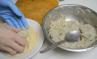 - Vorm met je handen in koud water mooie pasteitjes en rol ze goed door paneermeel. Ze kunnen worden vervangen door bloem of zetmeel.