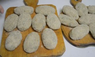 - Vorm van het verkregen gehakt langwerpige koteletten met je handen en rol ze door paneermeel.