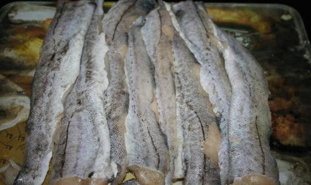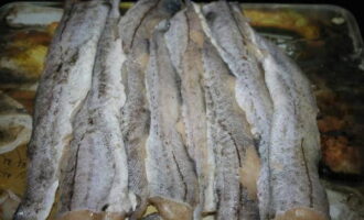 - We draaien de vis om naar de andere kant en doen hetzelfde. We halen de binnenkant van het skelet en van het hoofd, verwijderen de kieuwen. Hieruit zal het mogelijk zijn om de vissoep te koken.