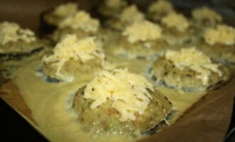 - We bevochtigen onze handen licht in water en vormen schnitzels van het afgewerkte gehakt. Bedek de bakplaat met perkament en vet deze in met een kleine hoeveelheid plantaardige olie. We smeren de producten erop en gebruiken een borstel om ze in te vetten met zure room. Het is het beste om een product te gebruiken met een hoog vetpercentage.
