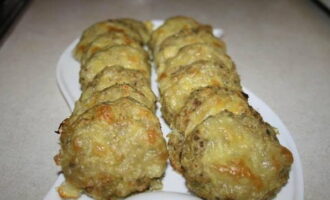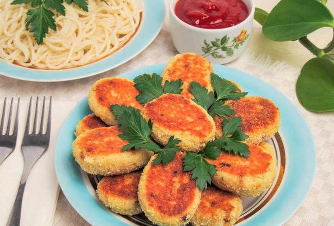 De combinatie van vis en kaas zal je aangenaam verrassen. De schnitzels zijn mals en rijk van smaak. Bovendien wordt dit gerecht als dieet beschouwd. Het gehakt bevat ook eieren, bloem, groene uien, koriander, basilicum, zout en peper.