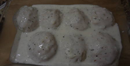 - Verwarm de oven voor op 180OC. Van gehakt vormen we balletjes en sturen ze naar een ovenschaal. Vul alles met saus erop. We sturen de schnitzels een half uur om te koken.