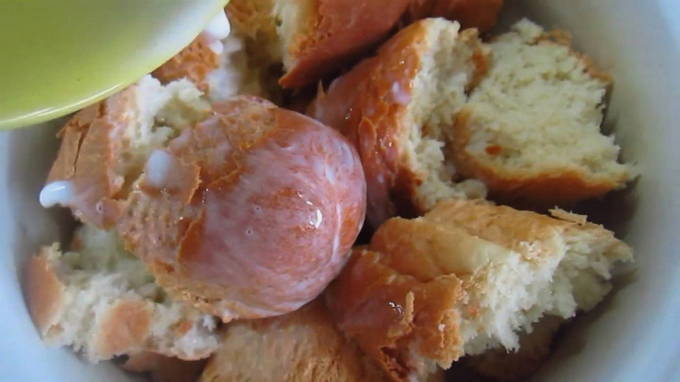- Vul het witbrood met melk en laat het ongeveer 4 minuten staan. We sturen het naar de gehakte roze zalm.