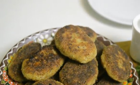 - Vorm kleine ronde pasteitjes met natte handen, paneer ze in paneermeel en bak ze in hete olie tot ze krokant goudbruin zijn.