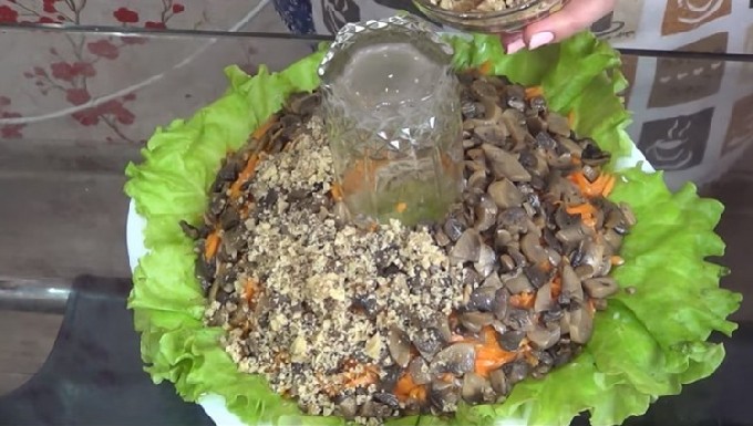 Noten passen goed bij kip. Dankzij dit recept met een foto en stapsgewijze instructies zal de salade mooi en smakelijk worden, zelfs voor een beginnende huisvrouw