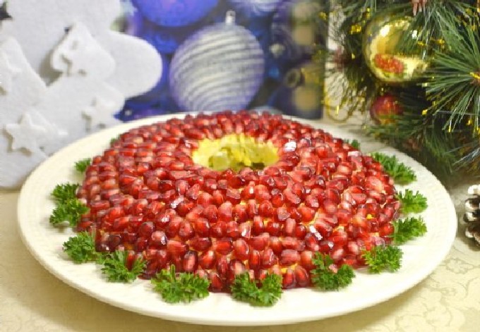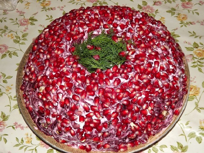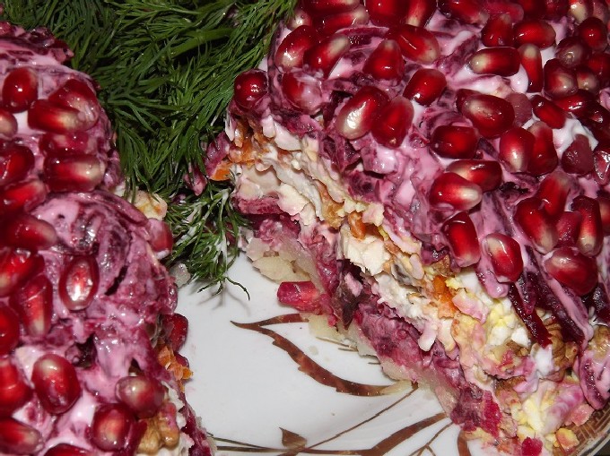 - Klassiek recept voor granaatappelarmband met kip en walnoten