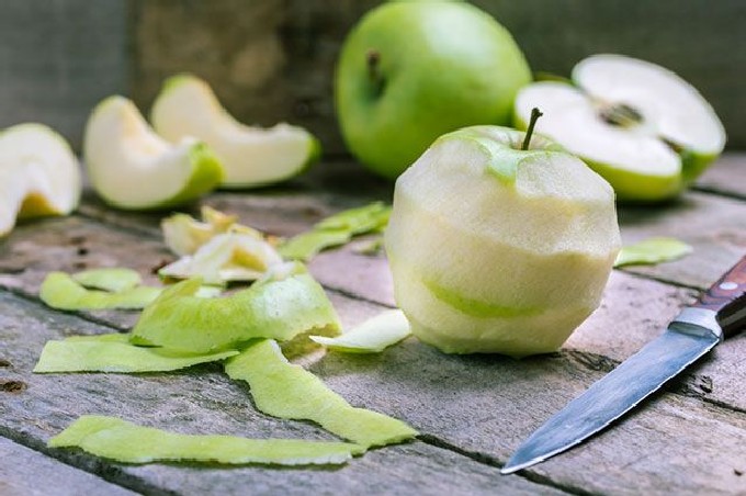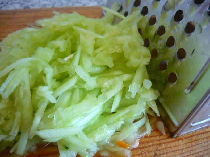 - Was de appels, verwijder de schil, rasp, bereik de kern niet, giet citroensap zodat de massa niet donker wordt.