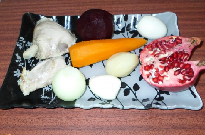 - Klassiek recept voor granaatappelarmband met kip en walnoten