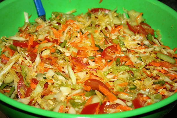 Salade van kool, paprika, komkommer en wortel voor de winter