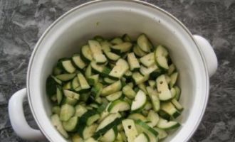 - Snijd de komkommers in elke vorm - in reepjes of cirkels van gemiddelde dikte. Ze moeten ook sterk en zonder bitterheid zijn.