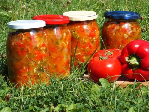 - Doe de massa in gesteriliseerde potten en rol op. De salade kan direct na bereiding worden geconsumeerd, maar wordt ook lang bewaard.