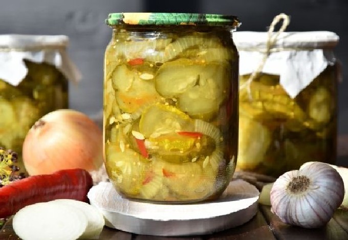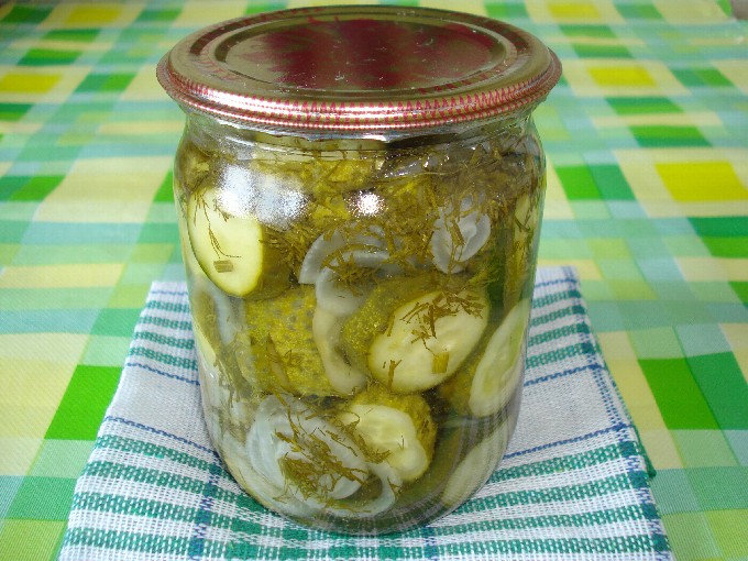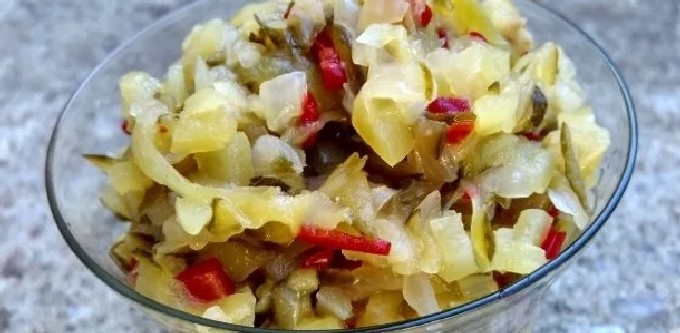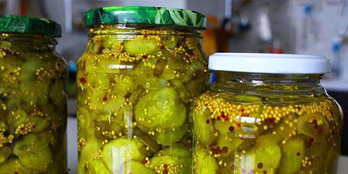 Heerlijke komkommersalade met mosterd en uien zonder sterilisatie