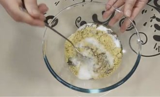 - Voeg mosterdkorrels, suiker, zout toe aan groenten. Giet azijn en plantaardige olie erin.